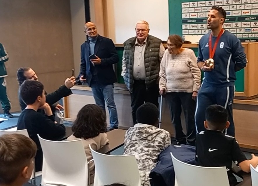 C’est pour témoigner de son parcours de vie singulier et surtout de sa vie de sportif handisport de haut niveau qu’Hakim Arezki a répondu avec bonne humeur et beaucoup de simplicité aux très nombreuses questions préparées par les enfants. Questions sur l’impact de sa cécité dans la vie de tous les jours, sur la pratique du cécifoot, sur sa vie de sportif de haut niveau, sur ce que ce sport et le sport en général lui apportent.